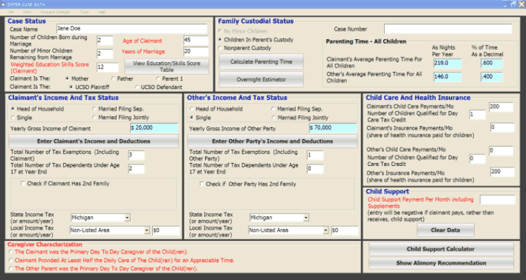 When you first start the program for Michigan, you will find the Data Entry Express Screen. A screen shot image is shown below. This form leads you to other sections of the program.The program does extensive data checking and will warn you if some data is missing or seems incorrect. |